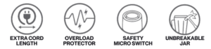 For enhanced safety and long-term reliability, the motor unit includes a heat-sensitive cutoff mechanism that automatically shuts down in case of overload or overheating. This product is intended for commercial use only.